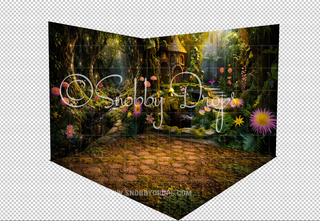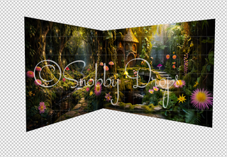 Magical Fairy Garden with Pink and Yellow Flowers Fabric Backdrop SN042D