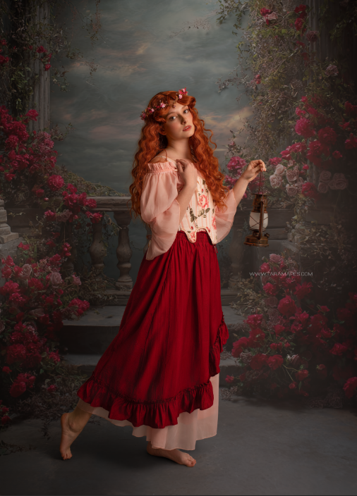 Midnight Rose Balcony Painterly Fine Art Fabric Backdrop Sweep
