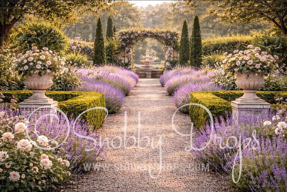 Garden Path with Fountain Fabric Backdrop