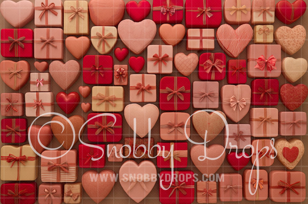 Valentine Gifts and Bows Valentine Fabric Backdrop
