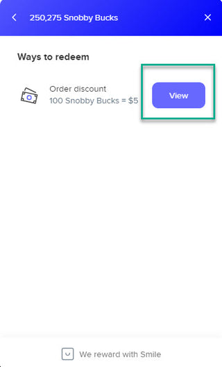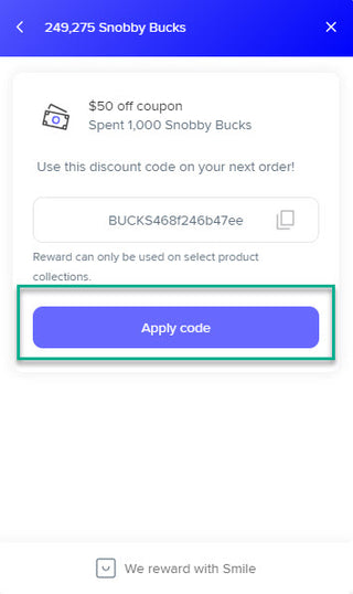 This will only be visible if you have redeemed Snobby Bucks but did not apply the code at checkout