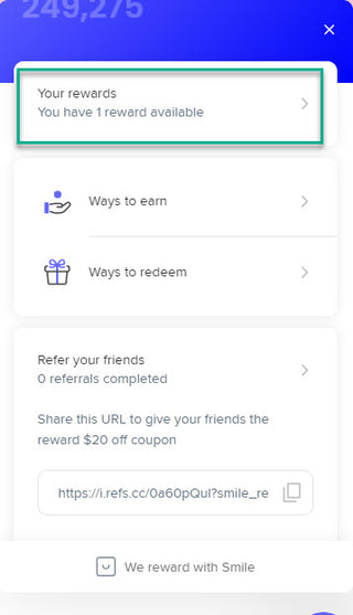 - Sign up (click here or click the purple rewards icon at the bottom right of your screen)
